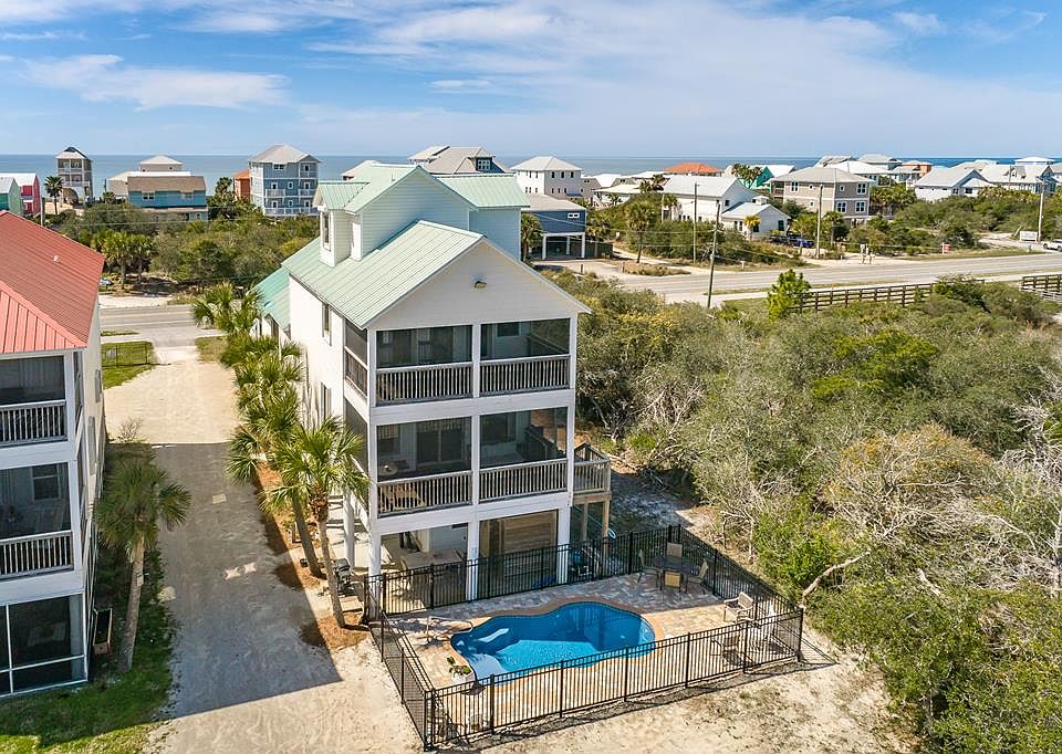 SEEKING BACKUP OFFERS! (current contract is contingent upon sale of another property) - This bayfront beauty in the heart of north Cape San Blas offers everything you could possibly want or need to fully enjoy bayside living on the Cape. The large home offers over 2,500 sq ft of living space with 5 bedrooms and bathrooms, including an attached studio guest apartment with its own kitchenette over the garage. Enjoy the gorgeous views from the elevated, screened porches on both levels of the home towards Pig Island Bayou and St. Joseph Bay, overlooking the private heated pool and expansive back yard. The residence is also located entirely in the X flood zone with so much ground level storage, including the large attached garage. This location is so convenient, directly off the bike path and within walking distance to the Scallop Cove gas station, convenience store, and tackle shop, with a deeded beach access a short walk away on Rachel Lane. The tastefully decorated and designed custom home features beautiful hardwood pine and tile floors with outstanding views from every room in the house and so much natural light. Sold fully furnished as a turnkey vacation rental or residence, this property shares a dock with one neighbor on Pig Island Bayou where you can leave your boat and enjoy easy access to St. Joseph's Bay. This one checks so many boxes, don't wait to start truly enjoying your time on the Cape. Check out the virtual tour!