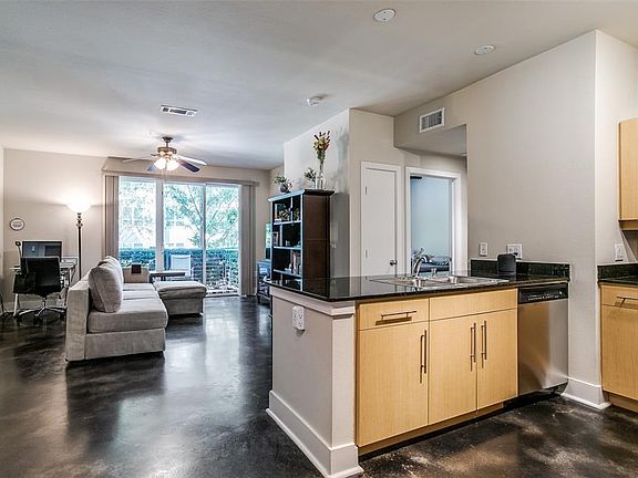 Rarely available ground level condo at Tribeca ! Beautifully kept one bedroom with roomy floor plan and lots of storage. Stained and polished concrete floors throughout the unit, for easy care and durability. Large living room opens to outdoor private patio amid mature landscaping. So many updates - high quality patio door and bedrooms windows. The newer door and windows enhance energy efficiency and privacy. HVAC replaced, as well as the electric water heater. Open kitchen with granite countertops, stainless steel GE appliances, and modern cabinetry. Multiple closets and walk in closet for primary bedroom. Large bathroom with tub and shower combo. Full size washer dryer connections. Includes one assigned carport space, as well as ample parking for guests in the gated parking area. The professionally managed property is well kept, and offers amenities such as a pool, fitness room, and dog walking areas. The pride of ownership shows ! 2022-09-22