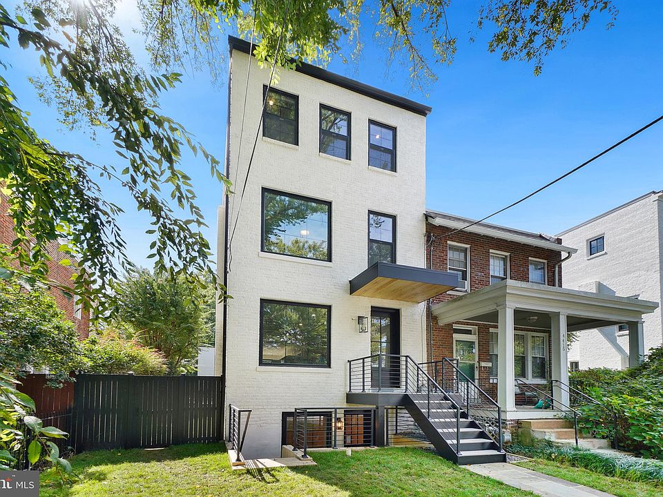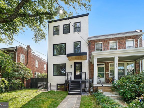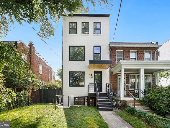 A masterfully reimagined 5BR/5.5BA residence with a fully detached 1BR ADU above a 2-car garage in coveted NW DC. Both structures have been newly framed and outfitted with all-new electrical, plumbing, HVAC, and integrated fire sprinkler systems. The main home features a rear addition, third-level pop-up, and expansive rooftop deck. Inside, enjoy soaring 8.5’ ceilings in the finished lower level with a second kitchen and private entrances—ideal for guests or rental. The chef’s kitchen boasts quartz countertops, all-new custom cabinetry, and premium appliances. Thoughtful upgrades include new windows and doors, TPO roofing, brick front façade, Hardie Plank siding, and multiple laundry zones. The 440 sq ft ADU is fully built out for flexible living or income potential. A rear deck and generous green space complete this rare offering.