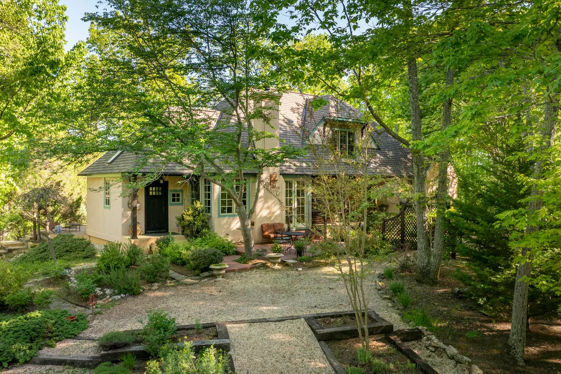 Spring-fed pondTravertine fireplaceTrails wind through woodsStone patiosFlexible interiorsStudio above the garageSpacious lower level