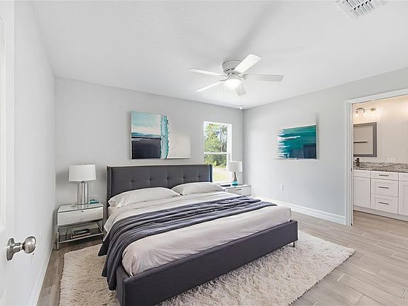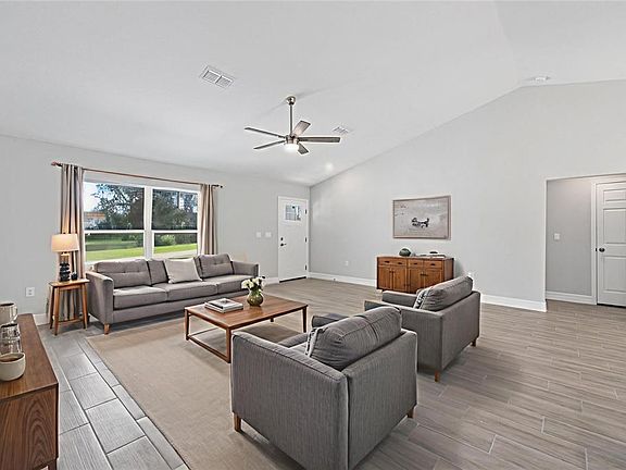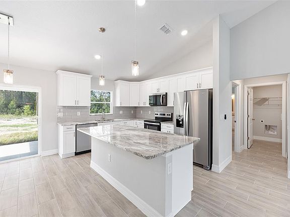 One or more photo(s) has been virtually staged. One or more photo(s) has been virtually staged. MOVE-IN READY! This stunning block-constructed home sits on a generous 0.37-acre lot, featuring a vast private backyard with a covered porch lanai! Inside, enjoy luxurious details like stainless steel appliances, soft-close cabinets with crown molding, and a stylish tile backsplash. The kitchen and bathrooms boast beautiful, upgraded level 2 granite countertops. Designer-style tile flooring is installed throughout the entire home—NO carpet anywhere. The welcoming great room offers ample space for various furniture arrangements, plenty of natural sunlight, and seamlessly flows into the expansive open kitchen and dining area, perfect for large gatherings. The three spacious bedrooms are configured in a split plan for maximum privacy. The owner’s suite features an elegant double square sink design, a fully tiled shower, and a large walk-in closet. The guest bedrooms have easy access to a second bathroom with a fully tiled tub/shower—no cheap acrylic or plastic finishes here! Call today to tour this brand-new construction home! Buyer concessions negotiable with an acceptable offer. All licensed buyer agents appreciated for showing. Don't miss out on this incredible opportunity!