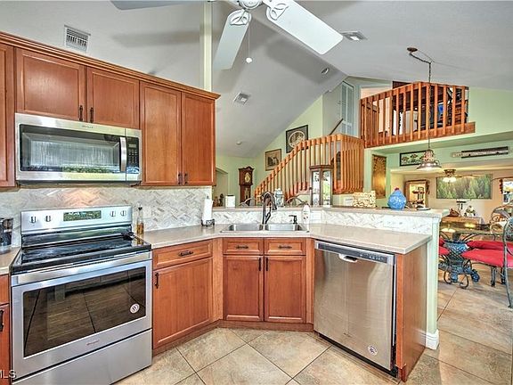 Immaculate home ready for new owner offering low maintenance living. This split floor plan has two bedrooms with bath on the first floor and an owners suite on the second floor for great privacy when enjoying visitors. The first floor's open floor plan is great for entertaining with lots of windows for light and vaulted ceilings. The master has a den and large bathroom with both shower and soaking tub. The den provides a great place for an office or additional sitting area. The master also has it's own balcony. There was no water damage experienced from Ian. The 25 year roof was installed in 2022. The house is surrounded by a beautifully landscaped yard.
