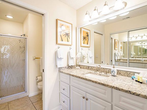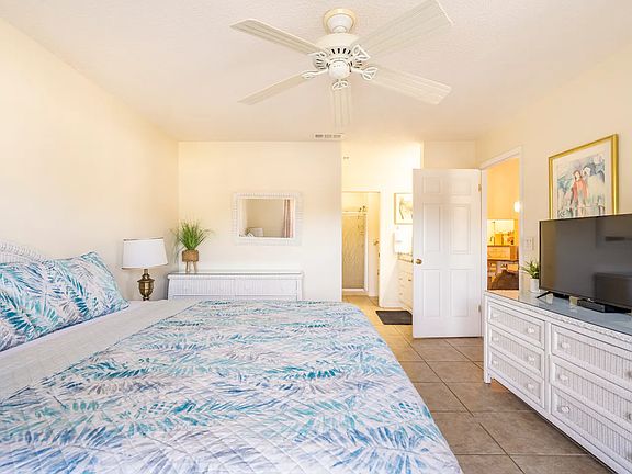 There is a spacious living/dining combo area, with nice large master bedroom/king bed & master ensuite bathroom. Guest Bedroom with a Guest bathroom that includes a shower/tub combo. Screened in lanai patio area with table & chairs. Washer & Dryer inside condo.