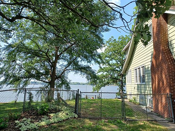 Incredible unobstructed sunset views from this beautiful lot. 75' of lake frontage with over 140' deep. Right next door to private neighborhood park. This is truly a diamond in the rough. Bring your ideas with you to transform this 1834 sq. ft. bungalow back to its original charm. Enjoy every day on the enclosed heated back porch. Three bedrooms, 1.5 baths with another potential full bath in the basement (all plumbing is there), fireplace (with woodburning stove insert) , some really nice built-ins, beautiful hardwood floors under most of carpet. Furnace has been overhauled by C&C heating and AC. The electric has been touched up too. The property is fully fenced, 2 car garage is connected by a breezeway, it also has a full basement. and concrete boat house. Extra lot PIN 09 07 326 016. For color aerial use 'additional information' dropdown. Please note there are no tax exemptions.