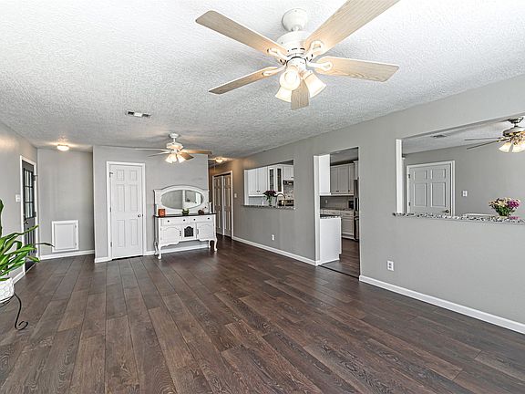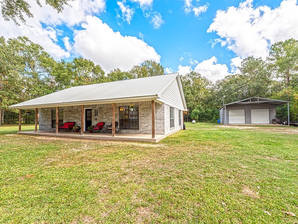 Country living with beautiful large oak trees! Do yourself a favor and come see this home in person. House is situated on just under 2 acres and features an open concept updated custom kitchen with soft closing cabinets/drawers. Throughout living area is durable wood laminate flooring that was recently installed in 2022. This home offers ample storage. Outside you will find a large 30x30 metal shop with 15-foot overhang/carport that is wired and ready for your TV and tools. Shop was built in 2019 and is equipped with a 220 outlet. Grab your fresh eggs out of the chicken coop, owners will convey chickens with home if buyers want them. Next to the chicken coop is a nice large enclosed well house with room for more stored items...lastly, the big safe in main closet STAYS. LOW TAX RATE and unrestricted. 16 Seer AC installed Dec 2020, water heater installed 2022. Never flooded. 50 year metal Mueller roof. This move in ready home has it all