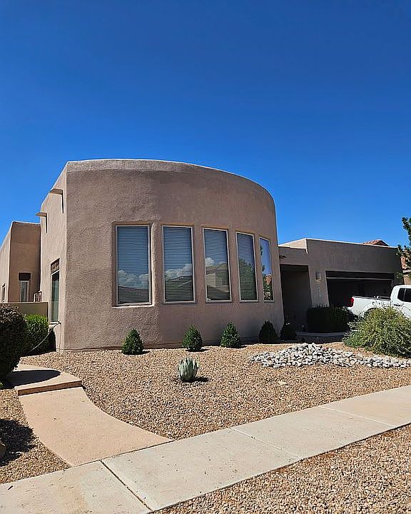Updated one story pueblo style, NEW roof; new hardwood floors; new carpeting; new stucco; new paint; new landscaping; new sod. Kiva style gas fireplace. Finished garage with built in storage cabinets. Beautiful views. Appliance allowance