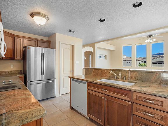 Welcome to this charming 3-bed, 2-bath Pueblo-style home in the gated Oxbow Community of NW Albuquerque. Enjoy bright living spaces with Sandia Mountain views and a custom Kiva-style gas fireplace for cozy evenings.This updated one-story gem features a newly finished roof (10-year transferable warranty), new hardwood floors, carpet, stucco, paint, and landscaping, all done this year. The finished garage offers built-in storage, and the master suite includes a garden tub, glass shower, and huge walk-in closet. Lovingly maintained by its original owner, this move-in-ready home combines Southwest charm, modern comfort, and a prime location near restaurants and shopping. Offering an appliance allowance allowing the next owner to make this home a dream of their own.