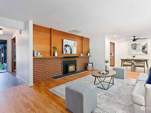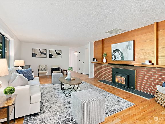 This home with an incredible 60's vibe has been beautifully refreshed in a spectacular setting on a shy 1/2 acre lot. Newly painted cedar clad exterior, generous 2-car carport + a 1-car garage with full size shop. Refinished oak hardwoods and flooring throughout, fresh paint, updated bathrooms, new lighting, large functional kitchen with new counters, newer black SS appl and refaced solid cherry cabinets, new windows. Absolutely magnificent back deck that backs up to lush woods, new energy eff. built in hot tub and a custom catio for your feline family. Crawl redone, updated Elec panel. Private neighborhood trail to beach and public boat launch. This home is a one of a kind gem!