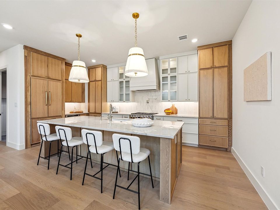 with natural light. The gourmet kitchen is a chef's dream, featuring high-end appliances, custom cabinetry, a large