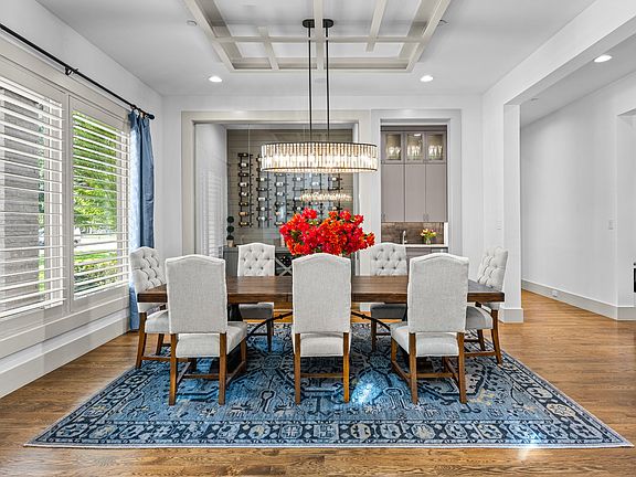 Inside, discover whole-home Control4 automation, an expansive chef’s kitchen that opens to the den and backyard, and a temperature-controlled glass wine room beside a wet bar with “sonic” ice machine. Formal and casual spaces flow seamlessly, anchored by dual staircases and filled with natural light. The primary suite and two guest rooms on the main level create an ideal layout for multi-generational living, while upstairs offers a game room, home theater, bar, and three additional bedrooms.