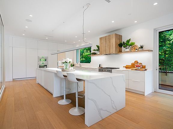 6,000 sqft of luxury living. A West facing 2024 build backs onto an additional 6500 sqft of Willow Creek Green Belt . Peekaboo views of Point Grey on top flr. W/14ft ceiling entry, 10ft ceiling throughout main, dining rm w/20ft sliding dr opening to 600 sqft patio. Gourmet kitch w/16ft is land, all Miele appl, double dishwashers. Great-room with 8ft steam fireplace , 300 sqft covered patio/dining. Bdrm/den, full bath & office . UPPER: Large primary bdrm w/steam fireplace, stunning ensuite , oversized dressing rm, 2 spacious ensuited bdrms, 644 sqft deck w/peekaboo views. ABOVE GROUND LOWER: Rec rm, media rm, large gym w/roll up door for max ventilation, ensuited bdrm, legal 1-bdrm suite w/full kitch, living, W/D. Elevator-Ready. Close to Stearman Beach, Isetta Cafe & Caulfield Plaza.