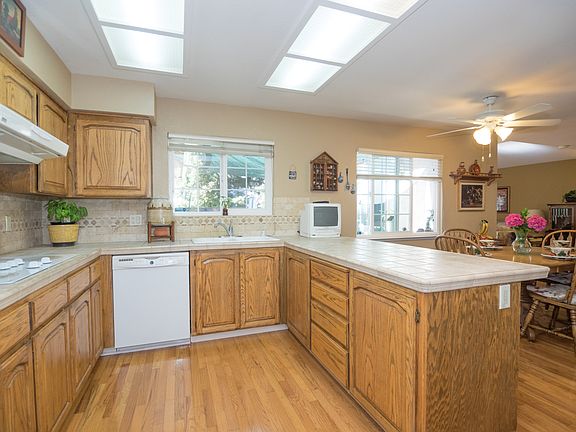 Wonderful ranch with glistening Oak flrs, vaulted ceilings, Berber crpt & 4" bsbrds. Updated baths w skylite, tile countrs & flrs, Updated kitchen w tumbled tile countrs, built-in dbl ovens,& pantry, nwr HVAC system, Milgard DP wndws, nwer 30yr Comp roof, private bkyrd, close to parks and schools