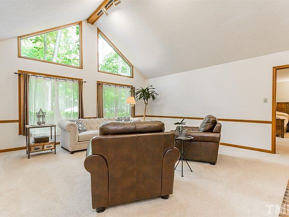 Contemporary one story in American Village Subdivision! This home will make you long to come home after a full day. The open floor plan will invite you in a way that you will actually want to entertain. The vaulted ceilings, over-sized windows, and large fireplace open the space up & make it feel very spacious. There is an amazing bonus/study/play space in sunny finished attic space that is perfect for relaxing with wine & a book. Lovely private wooded lot and deck to enjoy it from. 13mo home warranty