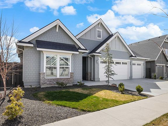 Tucked in Meridian’s peaceful Quartet community, this stunning 3 bed, 2.5 bath + Den/office James Clyde home offers 2,584 sq ft of luxury and craftsmanship. Enjoy vaulted ceilings, Thermador stainless steel appliances, quartz counters, custom cabinetry, fiber optic internet and built-ins in every closet. Premium plantation shutters are throughout the house. The oversized 3-car garage is fully finished with an epoxy coated floor and extra-deep bays. Upgrades include a tankless water heater with hot water recirculation, smart thermostat, sealed conditioned crawl space, electric or gas dryer hookups and a water softener. Outside, relax with serene canal views, full landscaping, and fencing. Enjoy grilling under the beautiful covered patio with a natural gas hookup. Gorgeous community pool and clubhouse less than a minute away. With premium finishes, thoughtful upgrades, and a highly desirable location, this home is the total package and it won’t last long. Schedule your tour before it’s gone!