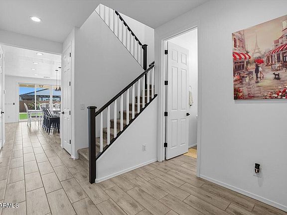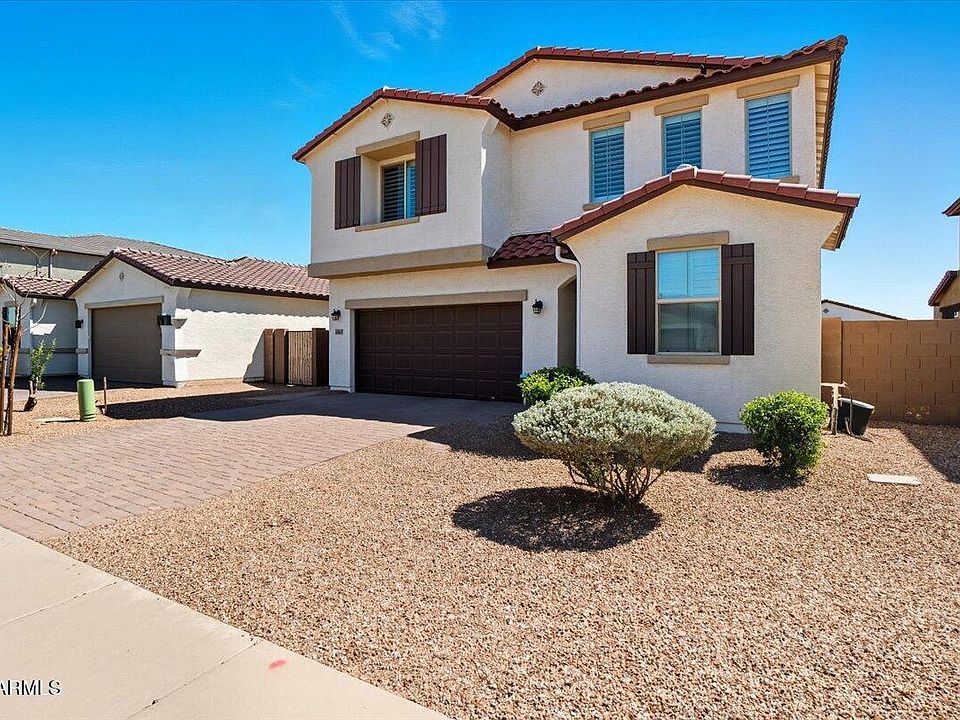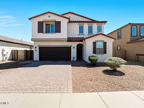This beautiful home, built in 2020, is nestled in a newer development in Maricopa, AZ. It offers five spacious bedrooms and 2.5 bathrooms, featuring many custom touches throughout. The master bedroom and three secondary bedrooms are located upstairs, along with a full bath, providing a comfortable and private retreat. There's also a versatile bedroom downstairs, perfect for a home office or guest room.