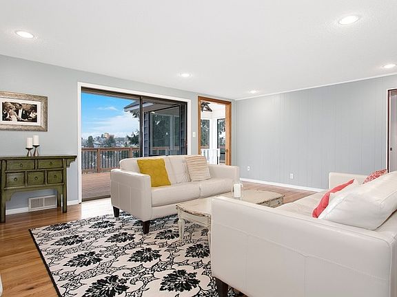 Tastefully updated Genesee mid-century home features an open-concept living area with hardwood floors, spacious chef’s kitchen with premium appliance upgrades, granite counters, tile floors, & new entertainment deck w/ sweeping territorial views of Mt. Rainier. Lower level offers 2 add beds, rec room, and 2nd kitchen w/ potential for MIL/Airbnb. Newer roof, paint, energy-saving heat pump w/ A/C. Large shop & oversized garage fits 2+ cars & more. Close to Alki, Alaska Junction, and Genesee Hill Elementary.