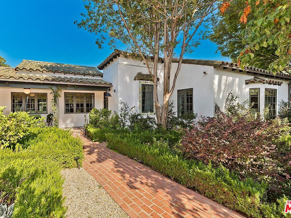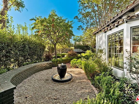 Short Term Lease - available until February 28, 2026. Reenvisioned Spanish Hacienda recently renovated & creatively furnished. Beyond the privacy gates & hedge, lush landscape leads to a welcoming front porch. A gracious entry hall opens to a striking living room featuring vaulted ceilings, bay window & fireplace. French doors, hardwood floors, beautiful tile & character details are found throughout. An additional fireplace & unique cork wallcovering highlight the comfortable den. A spectacular kitchen with island & high-end appliances opens to a lovely sitting room & formal dining. The Primary Suite offers a large walk-in closet & spacious luxurious bathroom. A unique free-standing tub is featured in the hall bathroom. The 3rd bedroom & 4th bathroom are found in the detached guesthouse. The porte cochere, gated drive and 2-car garage provide an abundance of parking. Beautiful landscape provides a relaxing backdrop to multiple patio areas and sparkling pool. Walking distance to wonderful restaurants, bars, and shops. A true oasis in the heart of Toluca Lake.