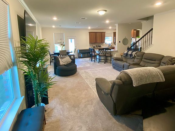 Spacious Open Floor Plan: Enter into a light-filled living area that flows seamlessly into the gourmet kitchen, featuring sleek granite countertops, stainless steel appliances, a large island with breakfast bar, and ample cabinetry for all your culinary needs. The adjacent dining space is perfect for family meals or entertaining guests.