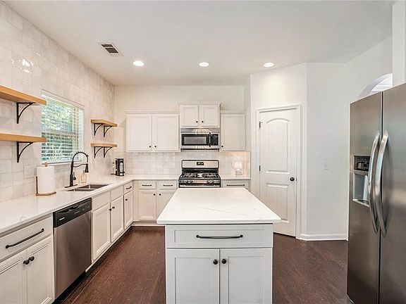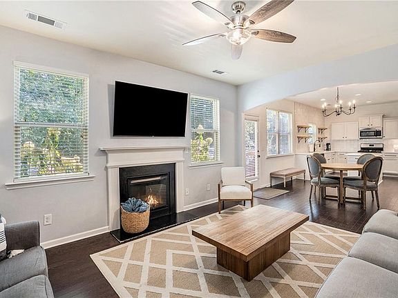 This inviting home in Hickory Commons at Shiloh Ridge blends timeless style with everyday comfort. Step inside to an open and airy layout where the family room, centered by a warm fireplace, seamlessly connects to the kitchen. Designed for both casual mornings and lively gatherings, the kitchen boasts granite counters, rich cabinetry, a walk-in pantry, and a breakfast bar that overlooks the living space. For special occasions, the dining room easily accommodates twelve or more guests, creating memories over shared meals. Upstairs, the oversized master suite becomes your private retreat. With a spa-like bath featuring double vanities, a soaking tub, a separate shower, and a spacious walk-in closet, it is designed for ultimate relaxation. Three additional bedrooms provide flexible space for family, guests, or a home office. Outdoors, enjoy a private fenced backyard with a patio that is perfect for weekend grilling or quiet evenings under the stars. The neighborhood offers swim and tennis amenities, adding to the lifestyle you will love. Ideally located near top schools, Kennesaw State, shopping, dining, I-75, and I-75 Express Lanes, this home combines convenience, community, and comfort.