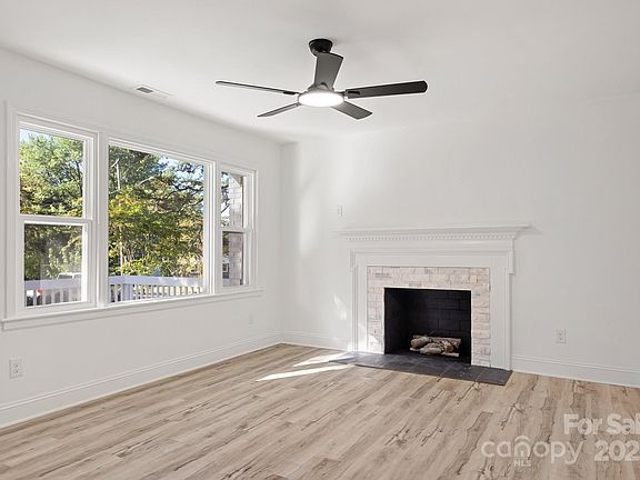 Gas fireplaceHuge patioGranite countertopsPrimary suiteDual granite vanityWhite shaker cabinetsNew lvp flooring
