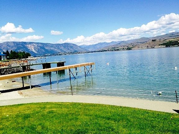 Truly an estate piece of property on Beautiful Lake Chelan. The entire lot is covered with lawn and some shade trees: it has a 140' of walk in sandy beach located on the South side just 3 miles west of downtown Chelan. This is possibly the best available large waterfront property on Lake Chelan. Over an acre of land gives plenty of room for your recreational activities with new dock. Totally updated "Cabin" ready for your enjoyment.