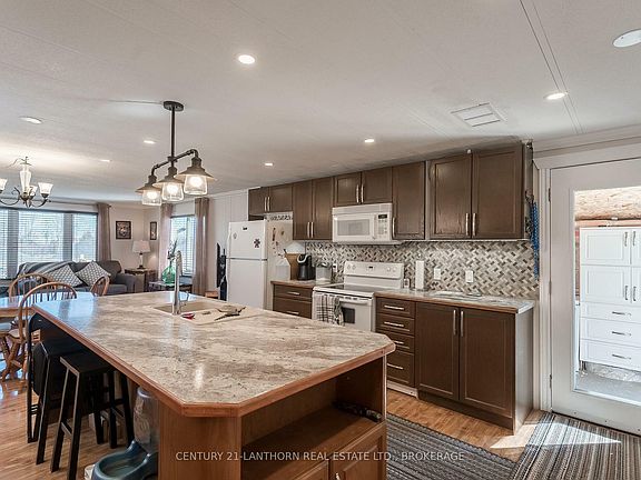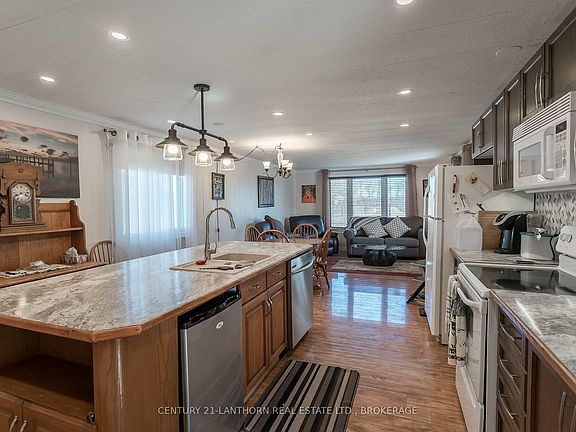 ATTENTION retirees and snow birds take note! Adult living community. Economical living in well kept popular Meadowood park, peaceful and quiet yet close to amenities. 5 minutes to Verona, 3kms to numerous lakes and easy commute to Kingston. Beautifully done, this home offers an updated kitchen with large island, Living room with lots of natural light, 2 bedrooms, main floor laundry, and deck. Newer windows. Carpet free, flooring updated throughout. Newer propane furnace, central air, and metal roof. Propane hook up for BBQ and hot water on demand. This home is well cared for, very clean and easy to show. 2 sheds 16x12, 16x10 and garage 12x16.
