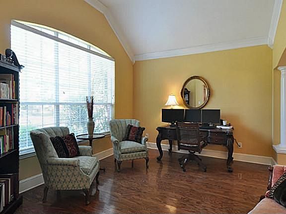 Warm, inviting one story with large kitchen open to spacious den, intriguing formals, study, split bedrooms & lovely backyard with super pool, deck + grassy area is in an excellent school district, near parks & numerous amenities. High ceilings, wood floors, island kitchen with granite tiles, generous cabinetry & counter space make for functional, easy living. Master ste includes sitting area, double closets. Well maintained, comfy & charming.