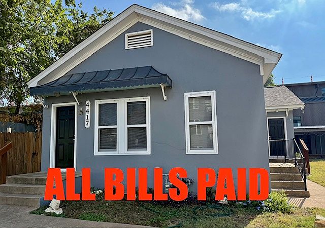 ALL BILLS PAID - DUPLEX - Front unit. Water, gas, electric, trash. Fenced side yard. Very unique, MUST SEE! Wood floors, a/c, carport with storage. Shared washer & dryer. Close to So. Congress and bus routes. Battlebend Park is within walking distance. Deposit is $1000. Pets allowed with owner's approval, breed restrictions and extra deposit.