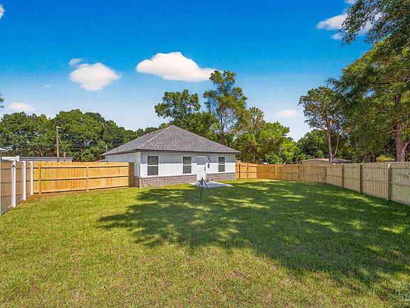 Brand-New & Move-In Ready! Take advantage of a generous builder credit with the preferred lender on this beautiful new home. Inside you will find high ceilings, an open concept floor plan, and a spacious primary suite with a private bath. The kitchen includes a refrigerator, plus standout custom details like a bricked island, coffee nook, tiled shower with glass door, sliding barn door in the main bedroom leading into the bath, and an upgraded windmill ceiling fan in the living room. Outside, this home shines with beautiful brickwork, board & batten style vinyl, & wood columns on the front porch, brick-accented front steps, fresh sod in the front and back yard, and landscaped front beds. Enjoy evenings on the welcoming front porch with room for seating, along with great curb appeal and no HOA. The backyard also comes fenced for added privacy. Conveniently located with easy access to Milton, Pace, Pensacola, and Crestview via the interstate. Backed by the builder’s one-year home warranty, this home is ready for its first owner today! Buyer and Buyer’s Agent to verify all measurements, square footage, school zones, and any other information deemed important to the purchase decision.