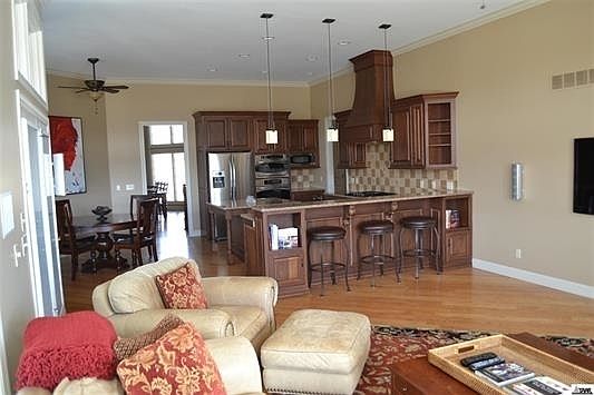 Beautiful and ready to move in walkout ranch on the lake at Laurens Bay with 4039 sq ft., high ceilings, 5 beds, 3.5 ba's, lrg master bedrm w/ walkin shower & closet, & jet tub, office, 3 car gar., open deck and screened in deck w/sun shakes, Kitchen w/ hearth and fp, Viking cooktop, Quartz tops in kit and bar, hardwood flrs., 9' walkout w/wetbar, fp., media or workout rm., wrought iron fence. $450,000.00