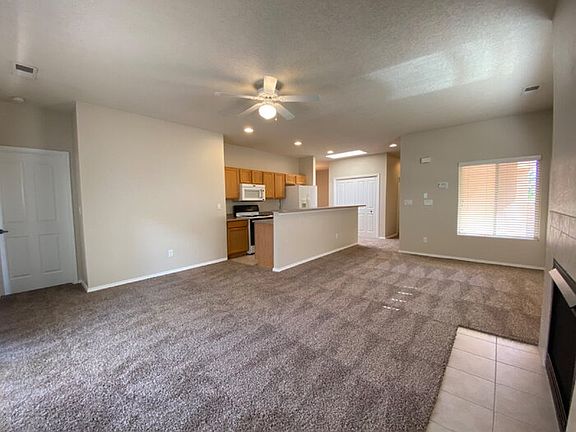 VIEWINGS - please register with Rentlycom. We show our properties with an automated lockbox system. For full details on this property, please visit our website Kellogg Agency. Wonderful home in gated community! FRESH PAINT THROUGHOUT. NEW CARPET THROUGHOUT. Two bedrooms plus small den/office, dining room, kitchen with breakfast bar, refrigerator, gas stove, microwave, dishwasher, disposal. Living room w/gas log fireplace. Window coverings, ceiling fans, skylights, tile/carpet flooring, washer/(gas or electric)dryer hook-ups. Master suite has large walk-in closet, garden tub/shower combo, and double vanity. Hall bathroom w/walki-in shower, single vanity and linen closet. 2 Car garage w/remotes, Southwest landscaping backyard. Refrigerated A/C. GATED COMMUNITY - Please contact Kellogg Agency for access to community. DIRECTIONS North on Hwy 528 E on Sara Rd R on Prairie Sage Way L on Sunflower Ct This property allows self guided viewing without an appointment. Contact for details.