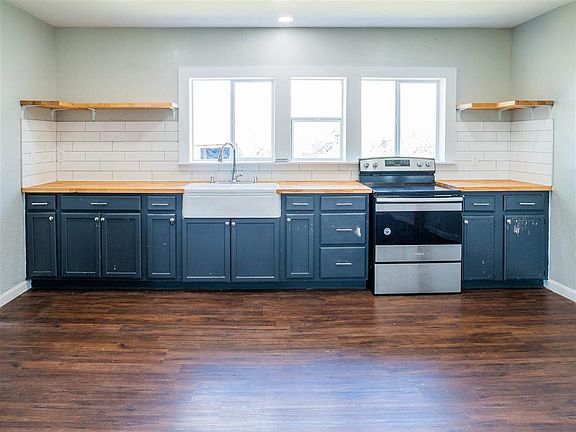 This almost 4 acre fully fenced property is rural living with a fresh face! The exterior is country blue with a cheery yellow front door! The interior is open and easy living with luxury vinyl plank flooring and an abundance of natural light. A gorgeous, updated kitchen with NEW bright sunny windows to let in natural light, subway tile backsplash, the essential farmhouse sink and grey/blue cabinets and some open wood shelving to top it all off. Two full sized bedrooms, and an extra space that can be used as an office/craft room or storage, plus a full bath and large laundry room area. This farmhouse has a serene yet fresh vibe you''ll surely love. Come make your dreams of starting a hobby farm come to life!