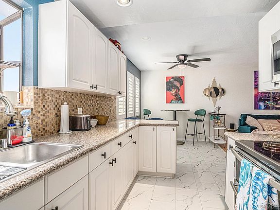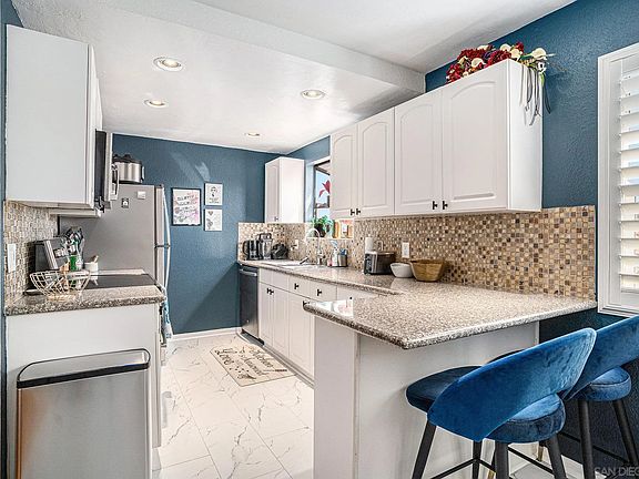 Picture yourself in this vibrant and bright 2-bedroom, 2-bathroom condo in Normal Heights. As you enter, you're greeted by an open layout with stylish accent walls and natural light, creating an inviting and airy feel. The newly remodeled kitchen features a modern mosaic tile backsplash and sleek stainless steel appliances, while the bathrooms are updated with fresh paint and cabinetry for a contemporary touch. You'll find plenty of storage in the main hallway, along with the convenience of in-unit laundry and a detached garage. Nestled in a cozy, gated complex, this upstairs unit is just a short walk to Adams Avenue and offers easy freeway access. Ready for showings!