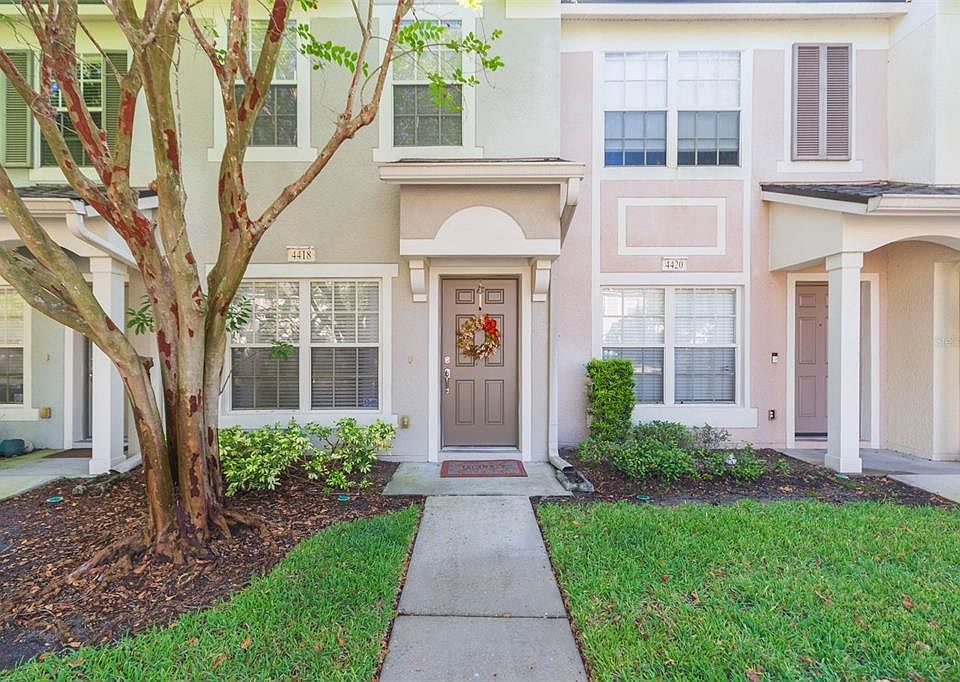 Gated, intimate Valhalla 2 bedroom, 2.5 bath townhome just off I-75 and 301 in Northwest Riverview boardering Tampa! 4418 is 100% move-in ready with luxury vinyl plank flooring throughout both upstairs and downstairs, freshly painted, new HVAC system installed earlier this year; water heater, range, refrigerator, washer and dryer also replaced within the past year. Main living space is downstairs with open living / dining areas leading to the kitchen with sliders overlooking a covered screened lanai + built-in storage closet. Both ensuite bedrooms are upstairs with oversized closets, vanities and bathtubs. The laundry room is in between. Walk to the community pool just two buildings up. Enjoy Spectrum cable and internet included within Valhalla's HOA fee... water / trash / exterior maintenance and the roof / painting as well. Owners relocating for work have done a lot of recent improvements not anticipating moving anytime soon :-) This one is a gem!!