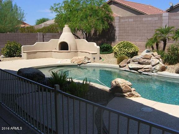 Located in desireable Desert Ridge area in an excellent, quiet neighborhood. Walk to schools and park. Minutes from 101, 51 and Desert Ridge Shoping Center/ City North. Home has 10' ceilings, tile floors in all the right places, prewired for surround sound, open great room, great kitchen w/new granite counters/ breakfast bar and dining nook off kitchen. All new kitchen appliances. Interior newly painted throughout. New carpeting throughout. Walls of windows look out to designer back yard. Covered patio, bench seating and an outdoor fireplace. Home is in excellent shape. Comes with fridge, washer and dryer. Den/ office could be 4th bedroom.