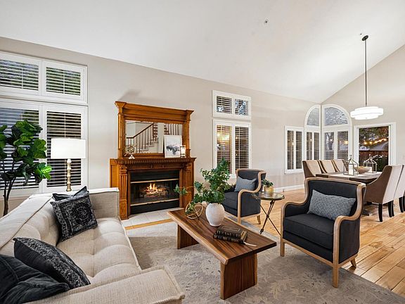 You'll experience wine country living at its best in this spacious and elegant home. Located in desirable Rancho Las Flores in North Napa, this 5-BR, 3 BA home features a living space with vaulted ceiling, a beautifully remodeled kitchen and a high-ceilinged bedroom and full bath on the main level. The floorplan was opened up so the kitchen with quartz counters, island and bar area is wide open to the living/dining spaces on both sides. A gas fireplace in both living spaces adds to the vibe. Enjoy a soak in the backyard hot tub taking in the beautiful landscaping, elegant patios and party lights. This property invites gatherings and fun, especially on the putting green! The high-ceilinged primary suite features a spacious walk-in closet. 3 more bedrooms with high ceilings and full hall bath upstairs and a 3-car garage complete this 2,926 sq ft property. Storage shed on the side could be for bikes or a workbench. Hop on Napa's famed Vine Trail just blocks away and travel to charming Yountville in one direction, or downtown Napa in the other. The pride of ownership is evident when you take in all that 4418 Linda Vista has to offer.