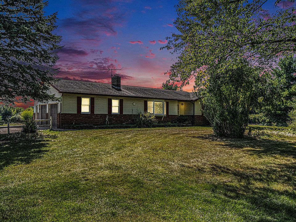 Open house 10/5, from 1-3! Showings start 10/4! Charming 3 bed/2.1 bath ranch on over 10 acres, an ideal equestrian property! Just 1 mile from town & 1/2 mile from the B2B Trail, this scenic setting offers woods for great hunting, horse pastures, a stocked pond, and abundant wildlife. Two barns provide excellent utility, including one with 7 stalls & tack room with doors leading to several pastures & paddock for multiple horses. The second barn/garage has a wood burner, shelving & 2 overhead garage doors, great for a shop for the hobbiest or utiilize to expand your mini farm. Inside, the granite kitchen features stainless steel appliances, a snack bar, and plenty of storage, with an adjoining dining area that walks out to a spacious composite deck with pergola overlooking the private yard with fenced dog area. The cozy living room is filled with natural light from a bay window and warmed by a brick fireplace. The main floor primary suite includes a w/in closet and private bath, while two additional bedrooms share a second full bath. A full walkout basement offers endless potential with a few finishes for expanded living space plus ample storage. This property combines peace, privacy, and functionality for both everyday living and outdoor enjoyment.