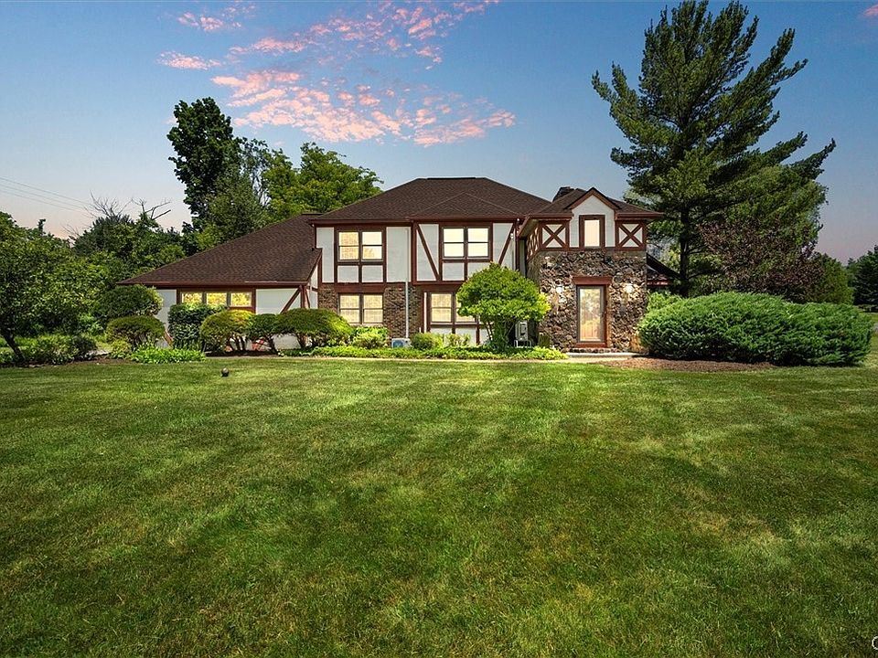 Welcome to 4418 Oran Station Rd in Manlius! This beautiful four bedroom, two full/two half bathroom home sits on nearly 2 acres of land surrounded by greenery. Hardwood flooring throughout the first floor, a completely remodeled kitchen with new cabinets, corian countertops, stainless steel appliances, tile backsplash and an island. On the first floor there is a office with built-in shelving and desks, a stunning glass three season room with skylights, two half bathrooms, first floor laundry, a wood burning fireplace off the kitchen, large living room attached to the dining room and a bonus room for an additional office, work-out area or reading room and two staircases leading to the second level. Upstairs in the primary suite you will find a second wood burning fireplace, double closets, on-suite bathroom with double vanities, walk-in shower and jacuzzi tub and linen closet. There are three other bedrooms, a small bonus room and a second full bathroom. With a large basement and high ceilings, there is potential to finish that space off enjoying even more living space! A very unique home with many wonderful features ready for its new owner. Come take a look today before it is gone!