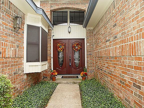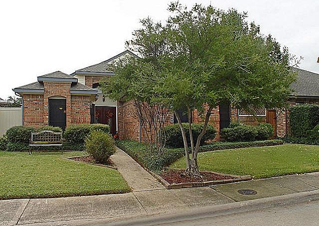 Delightful one story garden home in super North Dallas location. Open floor plan, vaulted ceiling in living den, dining room, ceramic tile flooring,cozy fireplace. Nicely equipped kitchen with updated white appliances. split master suite with his and hers closets, garden tub, separate shower, 2 sinks. Wonderful covered brick patio, plus extended decking. Some grass for a pet! 2 car garage plus 2 car carport. This home is pristine!!
