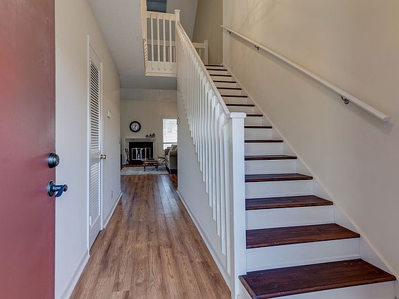 PRICE REDUCTION! This is a rare find! Features not 1, but 2 Wood Burning fireplaces! One in bedroom upstairs, and one in open concept living area. Hardwood floors throughout, and Carpet in bedrooms. Open Library area upstairs which could also be a 3rd Bedroom. Skylights for natural lighting. New roof, New Water Heater, HVAC has new pump and maintenanced regulary for past 3 years. SS Fridge and Dishwasher. Separate aggregate parking pad for 2 cars, plus add'l parking on street. Alarm system, Large Bedrooms. Bedroom and Bath up, and Bedroom and Bath down, perfect for roommate situation. Beautiful Staircase at Entry. Quiet/Peaceful Central location.
