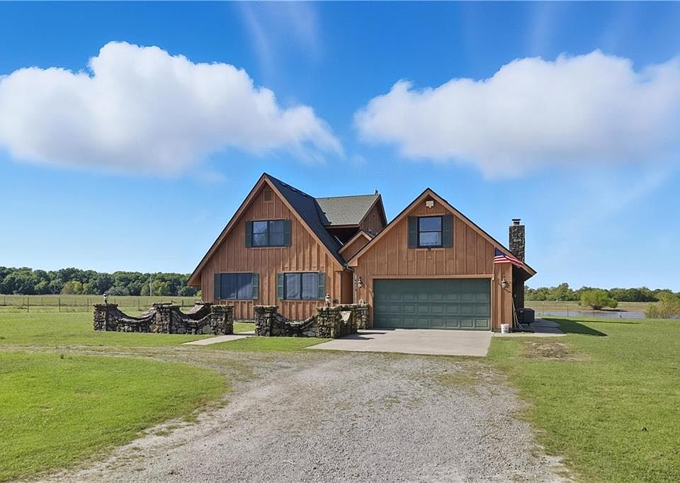 Nestled on over 4 acres of scenic pastureland, this majestic rustic alpine-style home offers peaceful country living. From the road, its striking cedar and stone exterior, along with its pipe-fenced frontage, make a bold first impression. Perched overlooking a pond, the home delivers a rare blend of privacy, charm, and convenience. Step inside to discover three spacious bedrooms, 3.5 baths, and thoughtful design throughout. Each living area features fireplace inserts with blowers and thermostats, as well as floor-to-ceiling Anderson windows that flood the home with natural light and frame the sweeping views. Notable interior features include: Custom cabinetry and 6-panel oak doors, Cathedral ceilings and open-concept living, LED lighting in most rooms, Walk-in closets, and an oversized utility room. Step outside to a large pergola-covered patio, perfect for entertaining or relaxing under the stars. It's already wired for a hot tub, making it easy to create your dream outdoor retreat. The property is both cross-fenced and barbed-wire fenced, ideal for hobby farming or simply enjoying the wide-open space. The attached 2-car garage adds everyday convenience, while the natural landscaping features a small waterfall and a tranquil, park-like setting. This home is more than just a place to live—it's a way of life. Schedule your private tour today to experience the perfect blend of rustic charm, modern amenities, and country serenity.