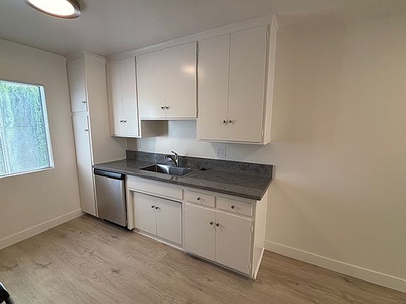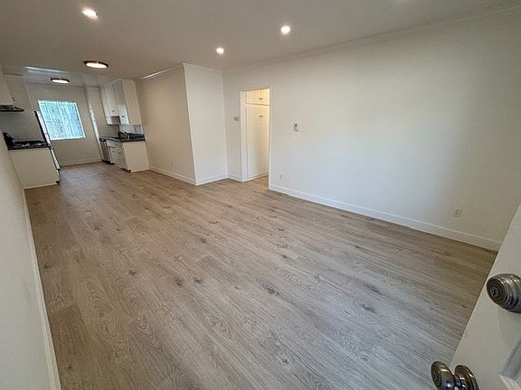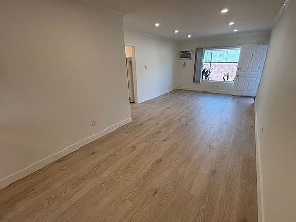 First floor front apartment with new appliances: refrigerator, dishwasher, range and hood; kitchen counter; and flooring throughout after long-term tenant left. This is a welcoming 8-unit apartment community in an excellent, quiet, residential area with easy access to freeways and Studio City amenities. Extra-long main room spanning the width of the building with recessed lighting. Air conditioning units in living and bed rooms, wall heater in hallway. Built-in floor to ceiling cabinets in the hallway. Carport parking and storage space. Laundry room in the building. Responsive, owner-managed building.