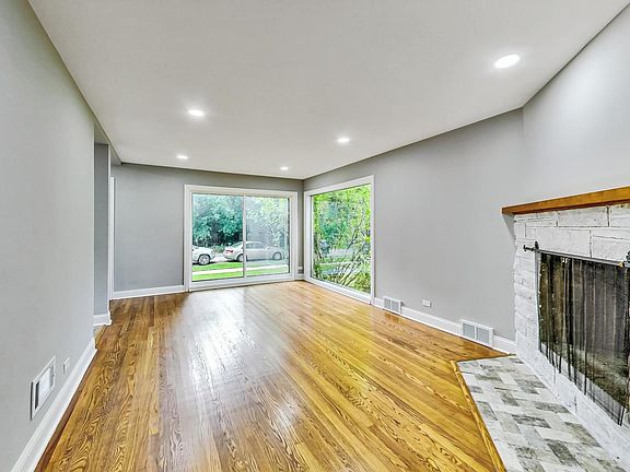 Discover the charm of Sauganash Park with this delightful gut-rehabbed three-bedroom/two-bathroom ranch home, offering a serene view of the forest preserve! Located on Bryn Mawr, it is a quiet side street, not a busy thoroughfare! The spacious living room features double picture windows and a cornerstone wood-burning fireplace. Gleaming refinished oak floors throughout add warmth and elegance. The updated kitchen with brand-new stainless steel appliances boasts white cabinetry, quartz countertops, and a stylish backsplash. All three bedrooms are generously sized and located on the main level, plus a bedroom in the basement. The full modern bathrooms are conveniently accessible. The inviting sunroom overlooks an expansive, park-like backyard with a privacy fence and patio-perfect for outdoor enjoyment. The bright and open finished recreation room offers additional living space, with separate laundry and utility areas nearby. Recent updates include new windows in 2013, copper plumbing in 2020, a gas-forced air system in 2018, and central air in 2015. Enjoy the stunning scenery year-round, with nearby bike and walking trails, parks, and top-rated schools. Experience all that Sauganash offers at an affordable price-this home is a must-see!