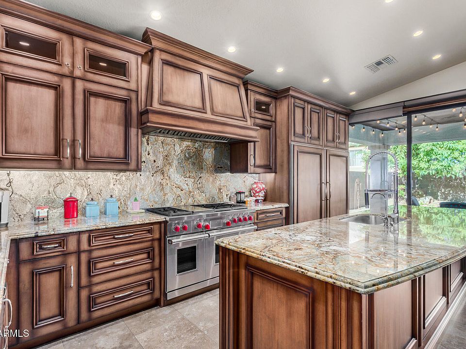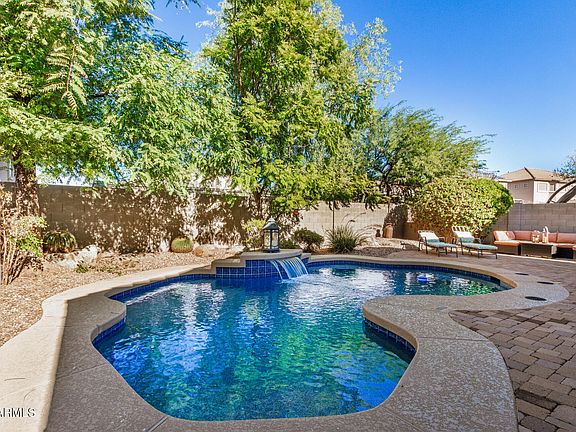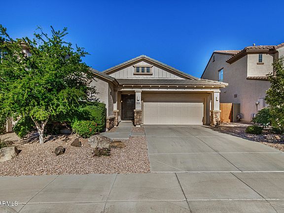 Home, sweet home! This stunning 4-bedroom property showcases a 2-car garage & tasteful stone accents for excellent curb appeal. Fall in love w/ the captivating great room w/ vaulted ceilings, a soothing palette, 14-foot sliding wall doors w/ automatic shades that lead to the backyard, durable tile flooring, & an inviting fireplace. The exquisite kitchen boasts granite counters w/ a matching backsplash, custom wood cabinets w/ crown moulding, recessed lighting, SS appliances, & an island w/ a breakfast bar. The tranquil primary bedroom features classic plantation shutters, a sitting nook, an ensuite w/ dual sinks, a lavish raindrop shower, & a walk-in closet. The enchanting backyard offers a covered patio, a built-in BBQ, stylish pavers, & a refreshing pool. Make this gem yours today!