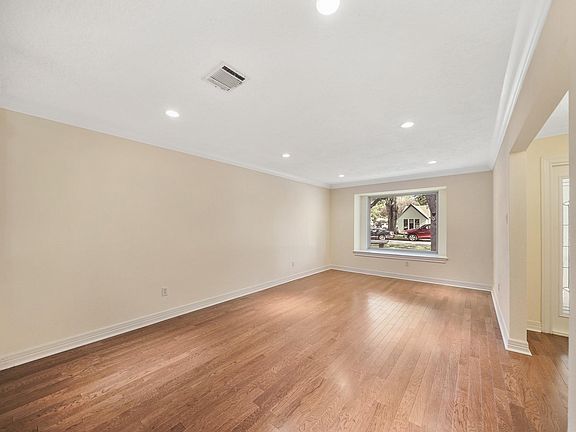 Recessed lightsCrown mouldingCustom built-insGranite countersBeverage fridgeHardwood and tile floorsCovered patio