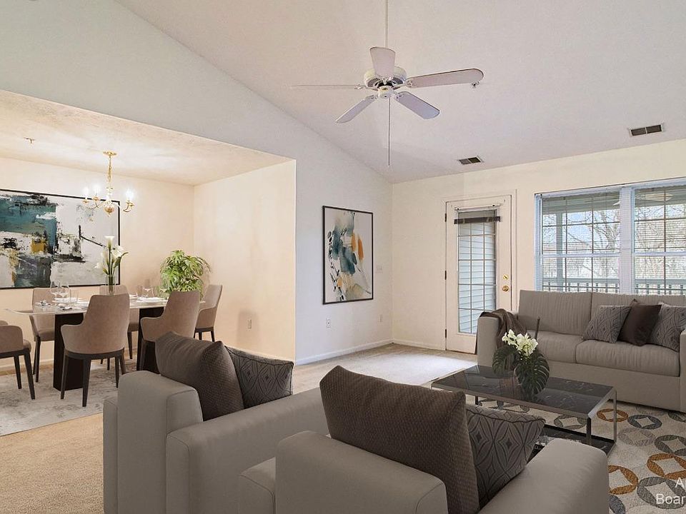 Welcome home to this bright, light-filled upper level condo in Huron Commons featuring vaulted ceilings, fresh paint, and bonus space! The floor plan offers spacious living and kitchen areas with brand new appliances including stove/oven, dishwasher, and microwave. Bonus- this condo features bonus flex space for dining/study/yoga- you choose! Laundry room is just off kitchen area. Enjoy the beautiful wooded views from the private patio and both bedrooms. Generous primary bedroom suite has double closets and full bath with walk-in shower. Additional bedroom and another full bath complete the home with one car garage. Clean, well maintained, and move-in ready condo is minutes from downtown Dexter, B2B trail, restaurants, shopping, and an easy commute to Ann Arbor and I-94. Call/text tod today for your private tour!, Primary Bath