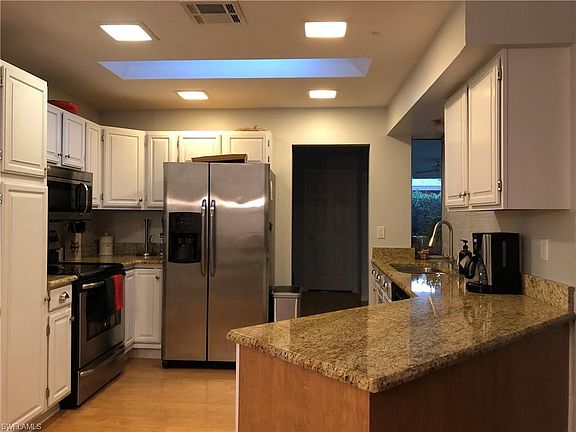 Best value in town considering the location of this home. This is the ideal house for first-time home buyer, an investor, a seasonal resident or a down-sizer. Situated in a family-friendly neighborhood, in close proximity to schools and shopping areas, 10 min from the beach and downtown Naples. NEW kitchen appliances, bathrooms and AC 4 years ago. New paint inside, new lanai floor. Custom made walk-in closet in master bedroom. Pet friendly community with no pets restrictions. Fruit trees in the spacious and private backyard. New sprinklers installed three years ago. Move-in ready. Offered furnished with some exclusions.