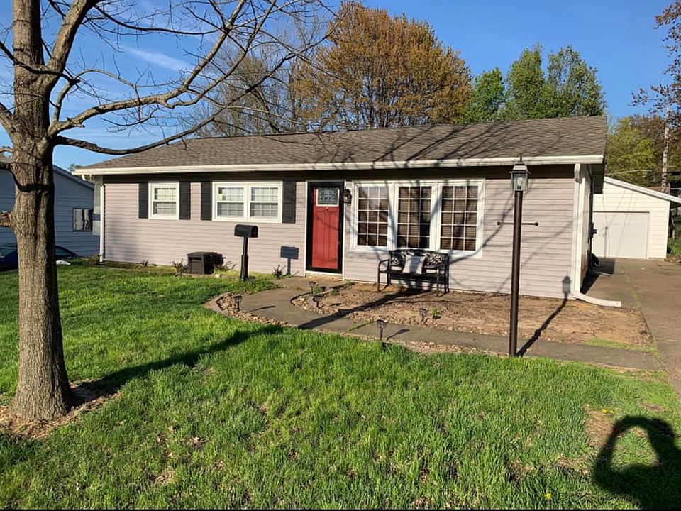 Super nice north side home with a light-filled open floor plan and neutral décor throughout. Spacious living room opens to the dining area and galley style kitchen with backsplash. Three bedrooms with generous closets. The updated bath has tile flooring and wonderful built-in cabinet. Glass doors in the dining room lead to an open patio which overlooks the back yard. There is a 26' x 26' 2.5 car garage with plenty of space for a workshop. Recent updates include: new siding (2019), water heater (2018), paint (2018), fixtures (2018), vanity and toilet (2018), lights (2018).