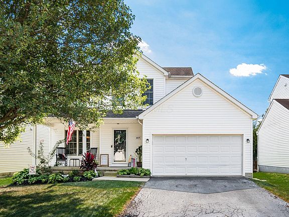 Located in Alkire Village, this move-in-ready, updated 2-story home blends style & comfort. Step inside to discover a refreshed kitchen featuring brightly painted cabinetry, new hardware, SS appliances & pantry. Other features home include 3 bedrooms, 2 ½ baths, formal dining room, family room & 2-car garage. Further updates: replacement windows, blinds, wood floors, painted throughout today's colors, HVAC 2019, roof prox. 9 years old. The outdoor space includes a covered front porch, fenced backyard, patio & shed storage. Enjoy the convenient location with easy access to major roads, shopping, dining & parks. Southwestern City Schools/Columbus Taxes. This meticulously maintained & prepared home awaits to be yours.