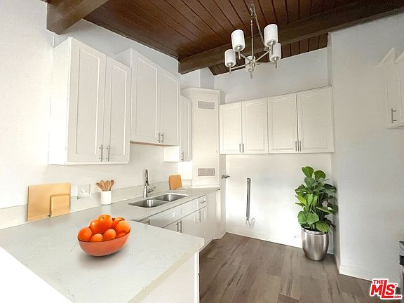 Private backyard patioHigh beamed ceilingsNewly remodeled kitchenGleaming countertopsWasher and dryer hookups